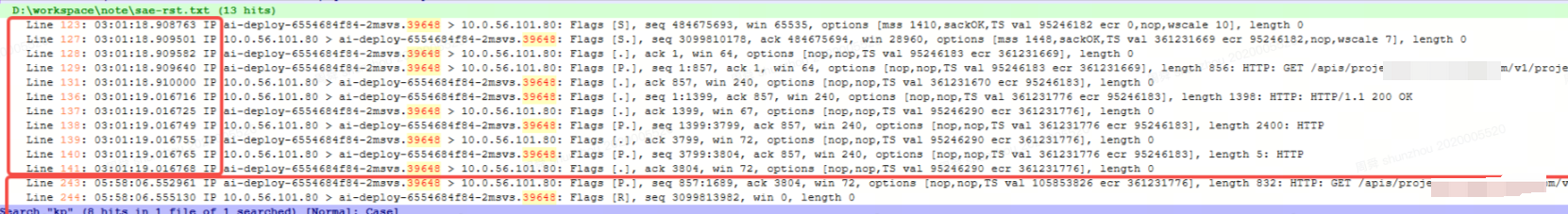 curl -X PUT 'http://sae-pre.xxxx.xxx.com/apis/helm.xxx.xxx.com/v1/projects/10279/clusters/453/namespaces/devops-test/releases/onecode-route' -H 'accept-encoding: gzip,deflate' -H 'authorization: Bearer xxxx' -H 'sw8: ' -H 'sw8-correlation: ' -H 'sw8-x: 0-' -H 'content-type: application/json' -H 'content-encoding: UTF-8' -H 'user-agent: Apache-HttpClient/4.5.14 (Java/1.8.0_342)' -d '{xxxx}'SAE同学抓到RST的包